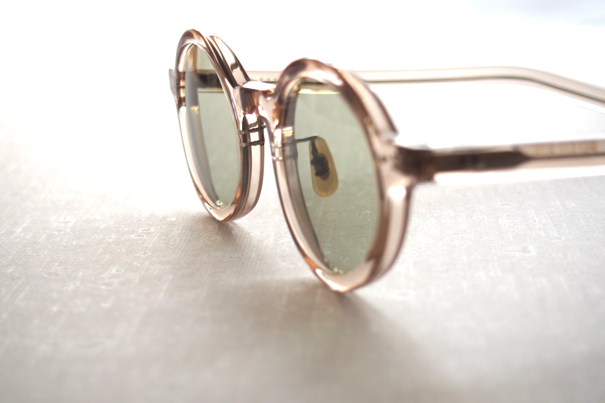 通常のクリアフレームとは違いベージュの様なクリア感で、大人な雰囲気を持っています。