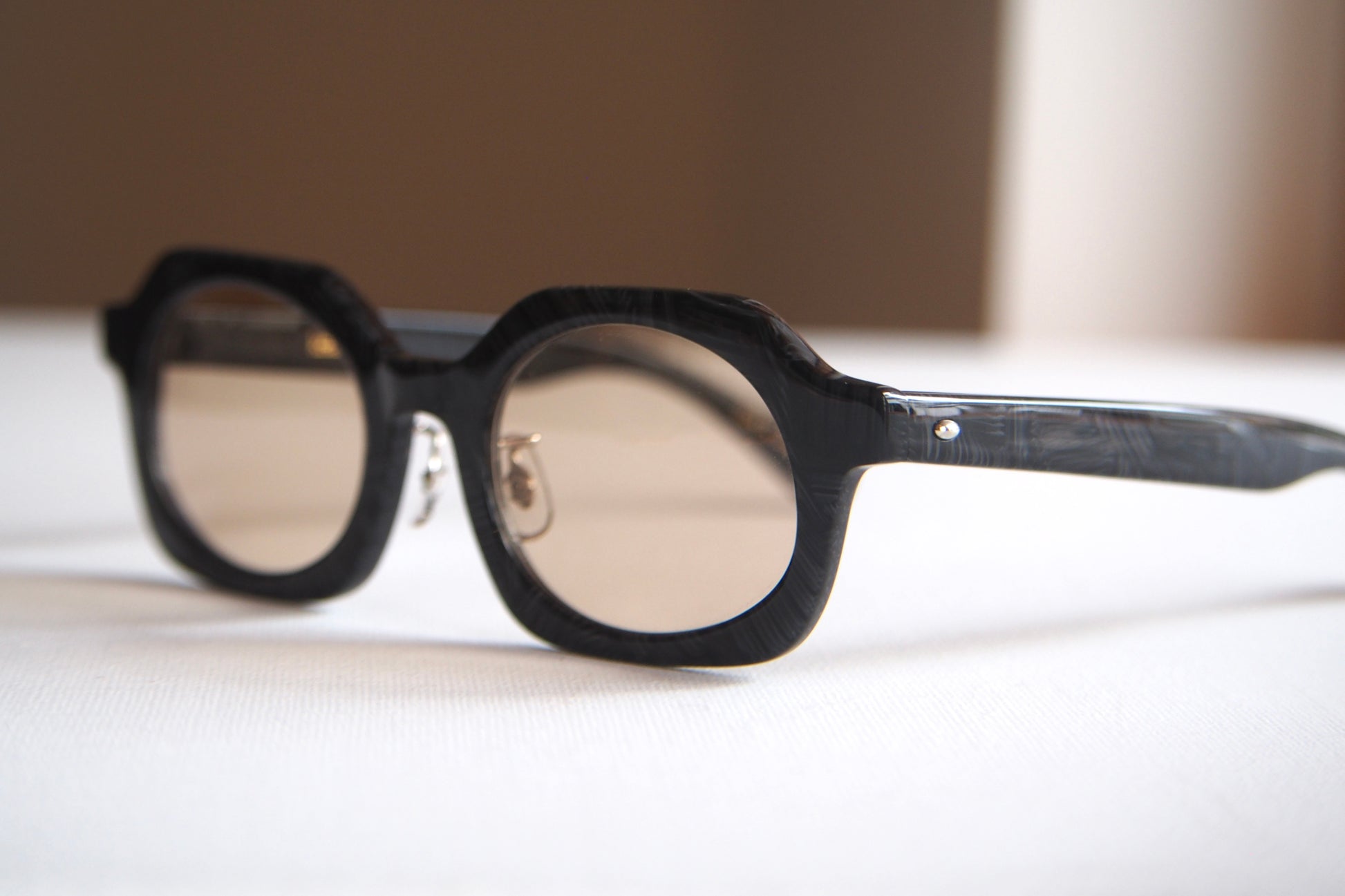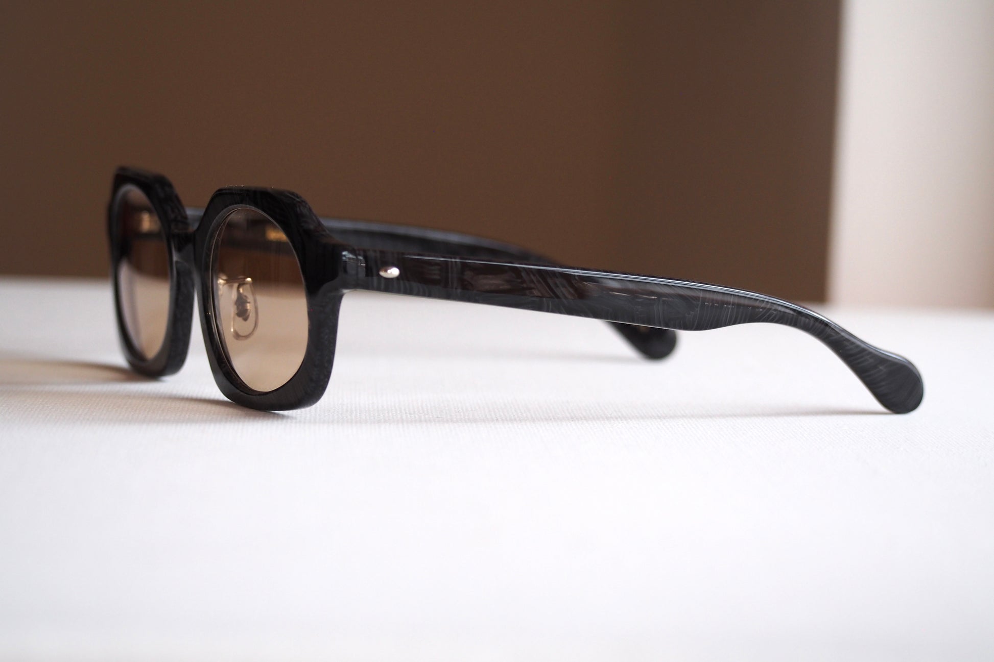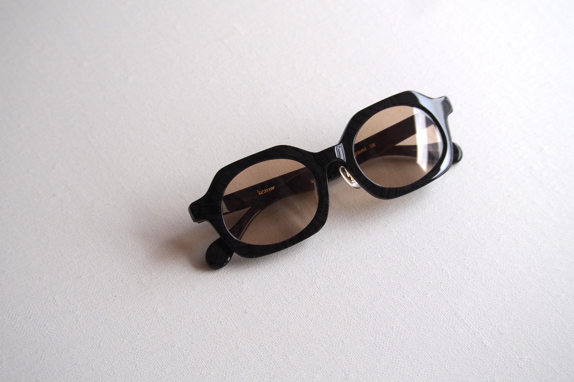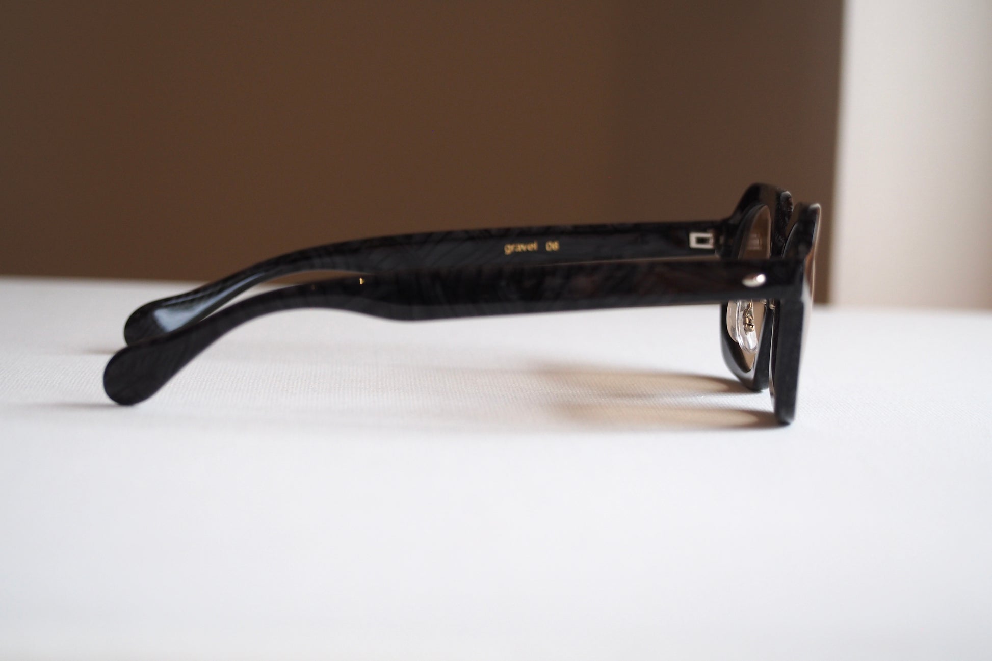 素材には、国産アセテートメーカー「タキロン・ローランド」にてオリジナルの色を製作。国内生産にこだわりながら、色柄の自由度を活かして“砂利=gravel”の質感を表現しています。