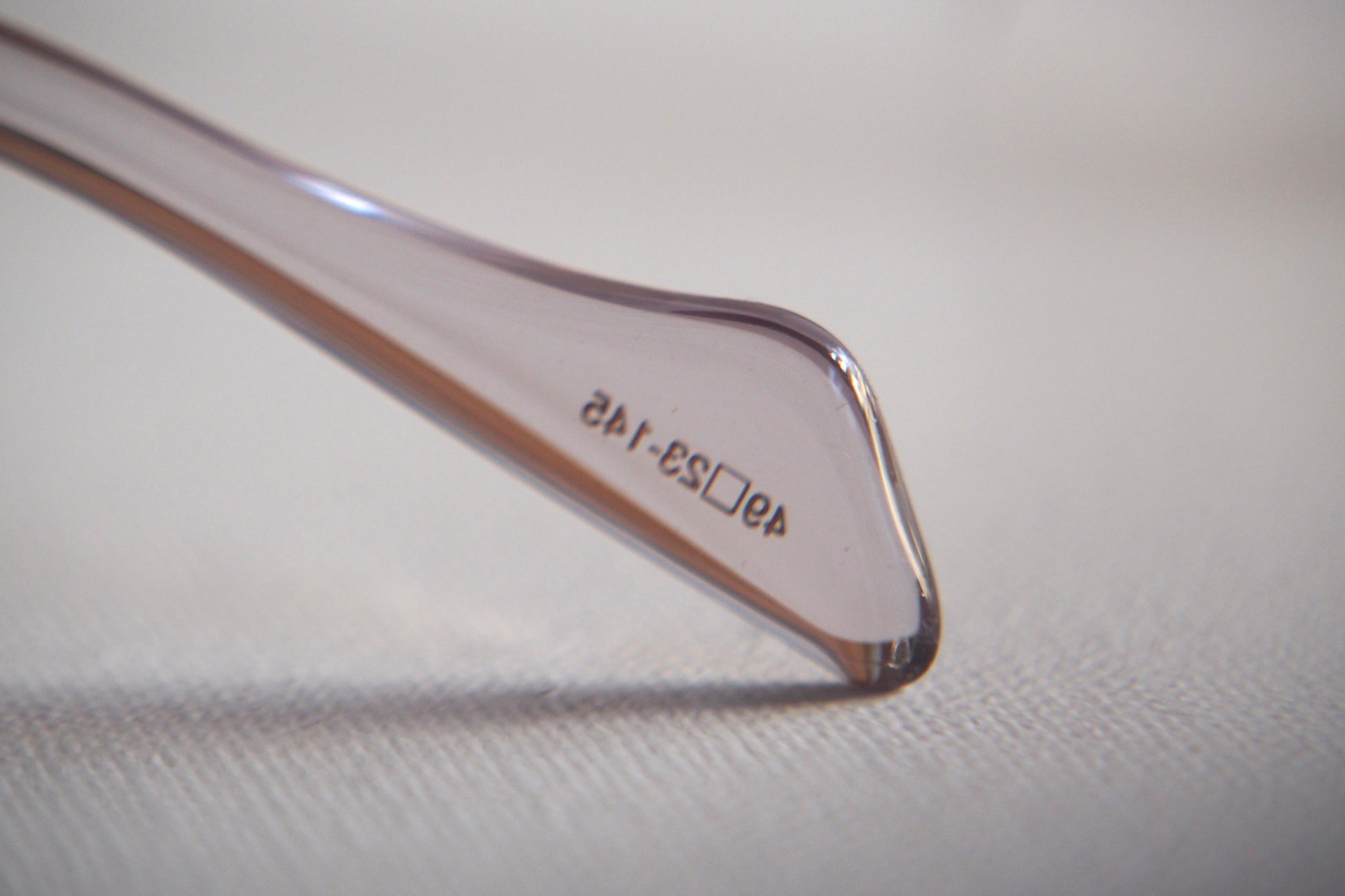 また、セルロイドで仕上げたフレームは、歪みが出にくい安定した素材なので、テンプルに芯金が入っていない「ノー芯」という技法でつくられており、少し透明な美しい生地色を最大限に引き出しています。