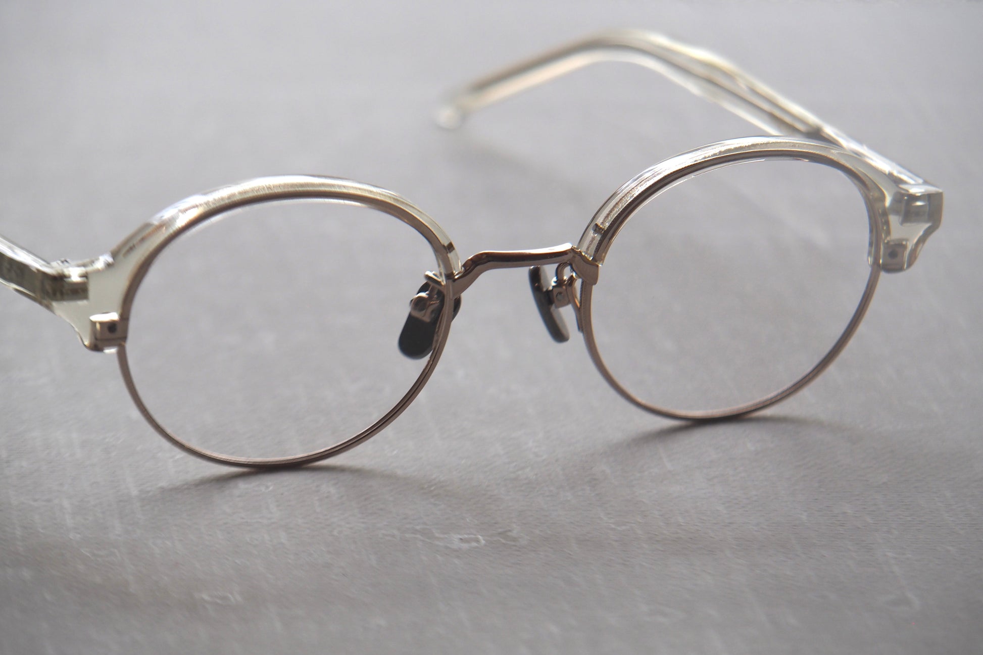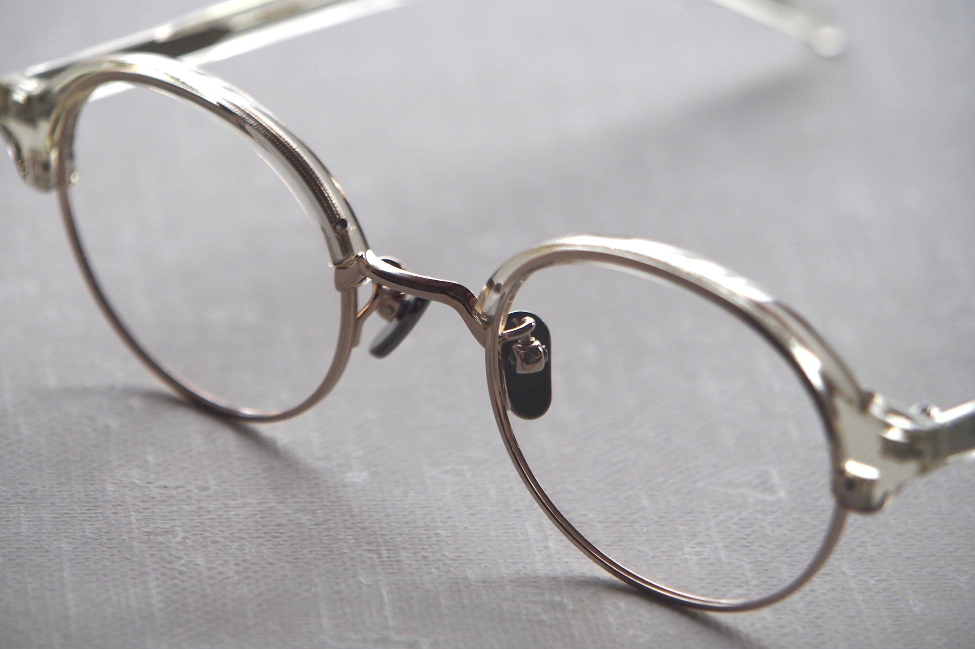 フレームカラーは生成のクリア、メタルは肌馴染みの良いゴールドというラグジュアリーなカラースタイルです。