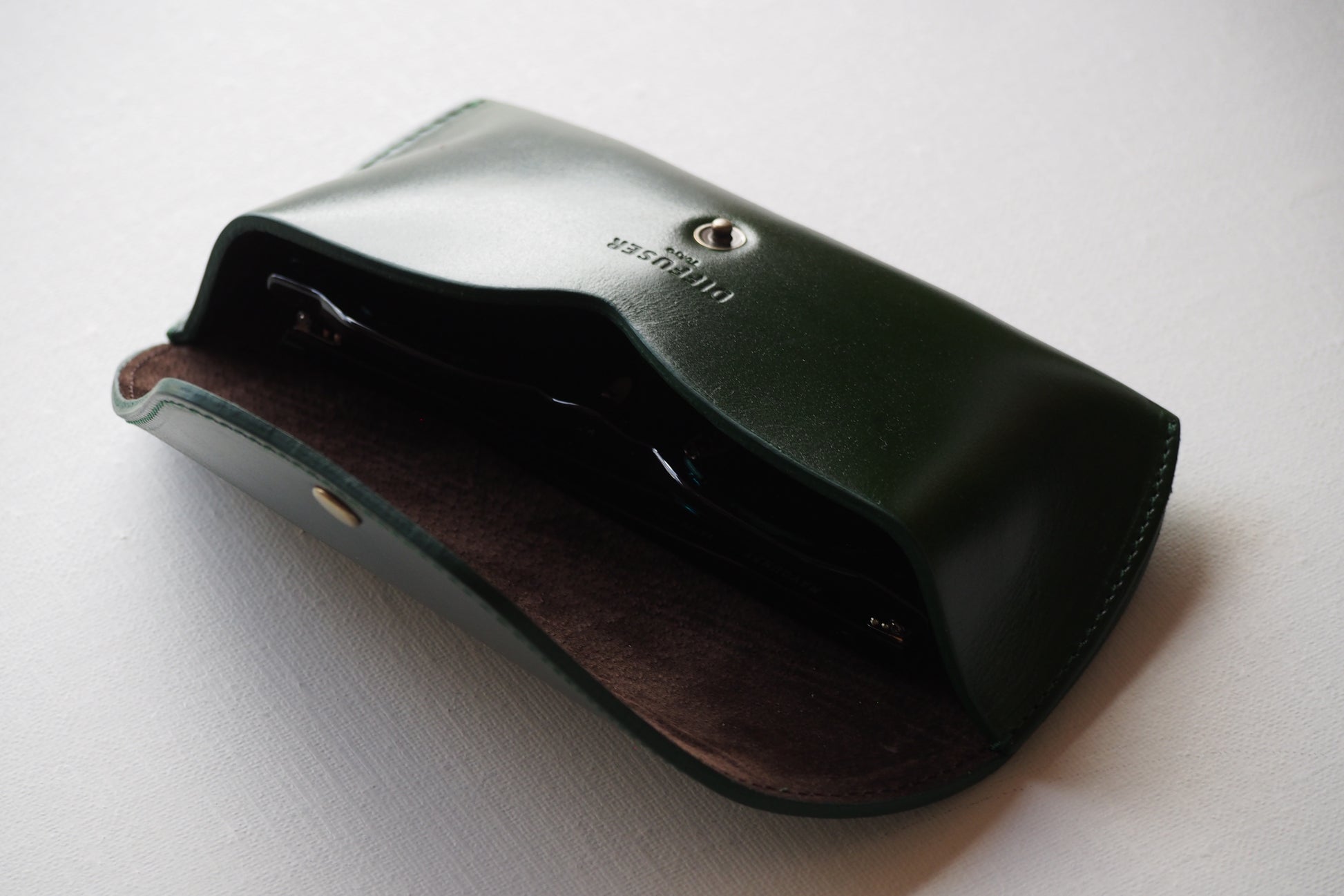 OIL LEATHER EYEWEAR CASE / Green & Dark Brown