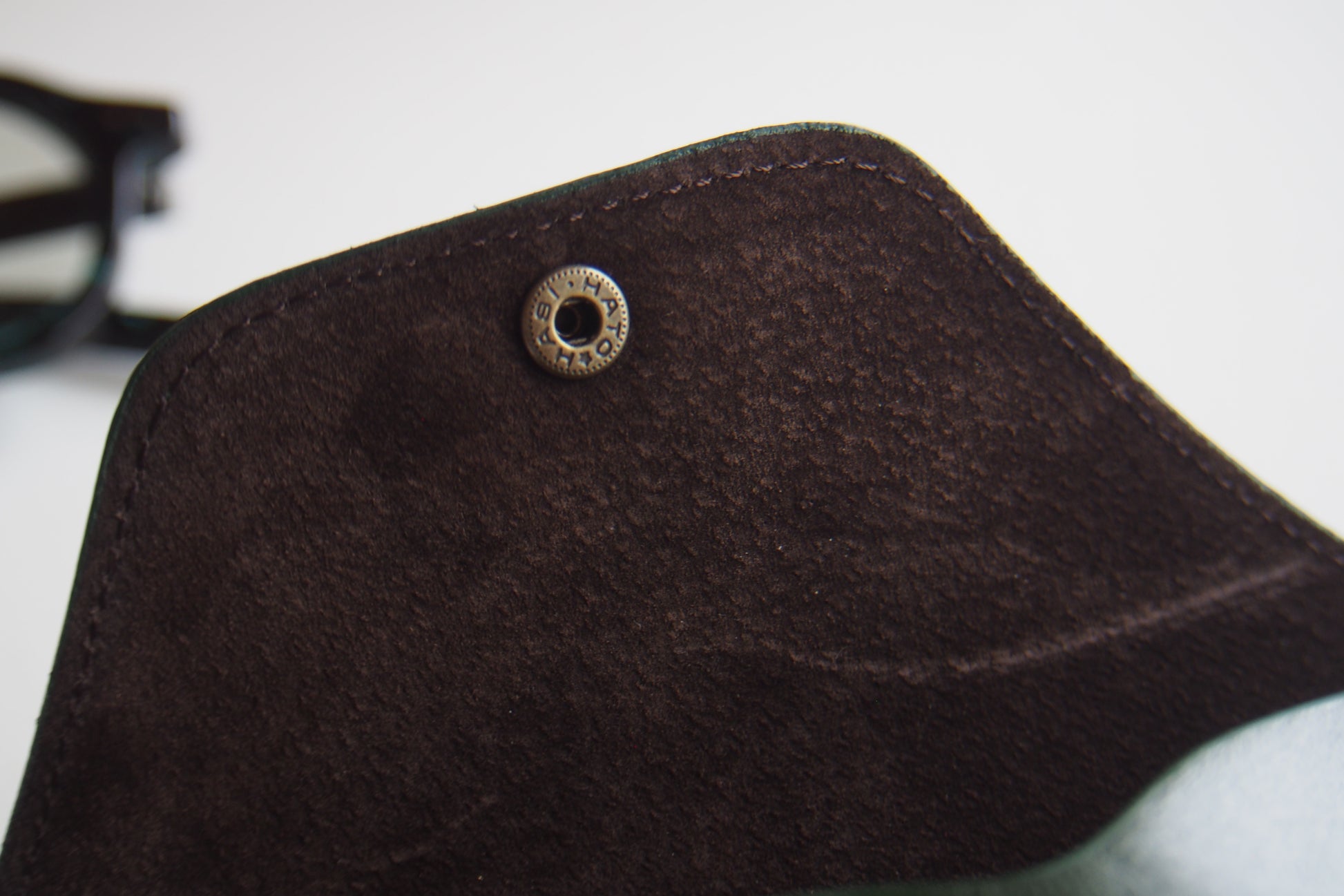 内側には木目の細かい国産ピッグスエードを使用し、レンズやフレームをやさしく包み込みます。